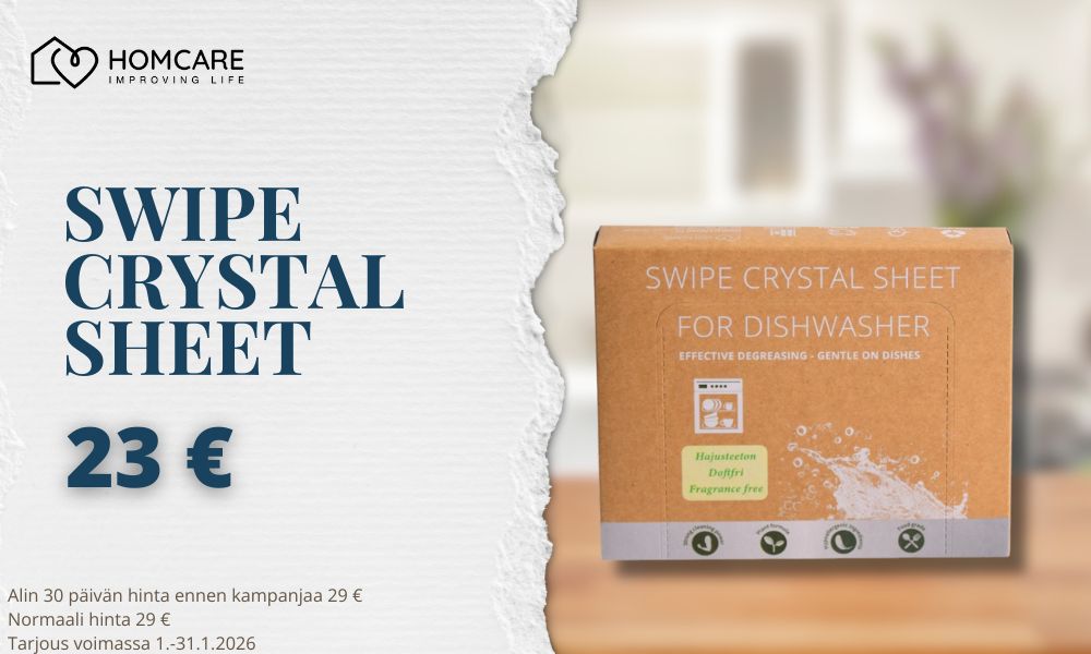 Crystal Sheet on hajusteeton ja sen sisältämistä ainesosista yli 90 % on kasviperäisiä.