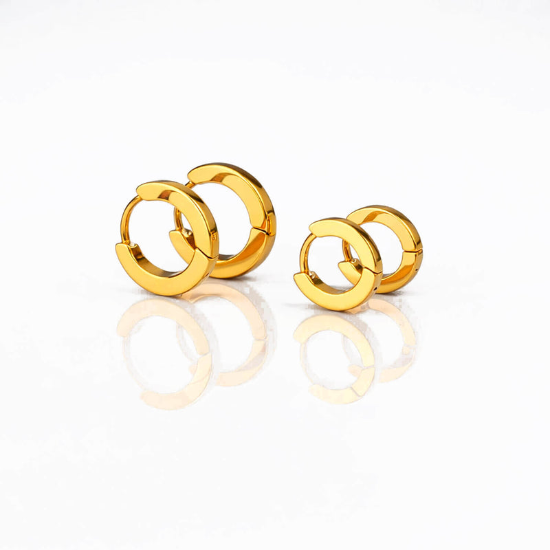 Setti sisältää kaksi paria huggies-tyylisiä korvakoruja: pienemmät (sisähalkaisija 7 mm) ja isommat (sisähalkaisija 9 mm). Yhdistele eri kokoja ja luo omaan tyyliisi sopiva kokonaisuus – arkeen tai juhlaan.