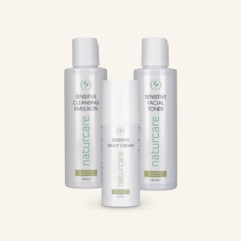 Pakkaus sisältää Sensitive Cleansing Emulsion -puhdistusemulsion, Facial Toner -kasvoveden ja Night Cream -yövoiteen.