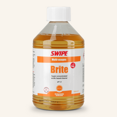 Brite on erittäin tehokas hapan puhdistusainetiiviste (pH 1,0–1,5), joka irrottaa helposti kalkkikiven, ruosteen ja muut pinttyneet mineraalisaostumat – sellaiset, joita emäksiset tai neutraalit aineet eivät tehoa. Sopii erinomaisesti kylpyhuoneeseen, saumoihin ja muihin vaikeasti puhdistettaviin kohteisiin.